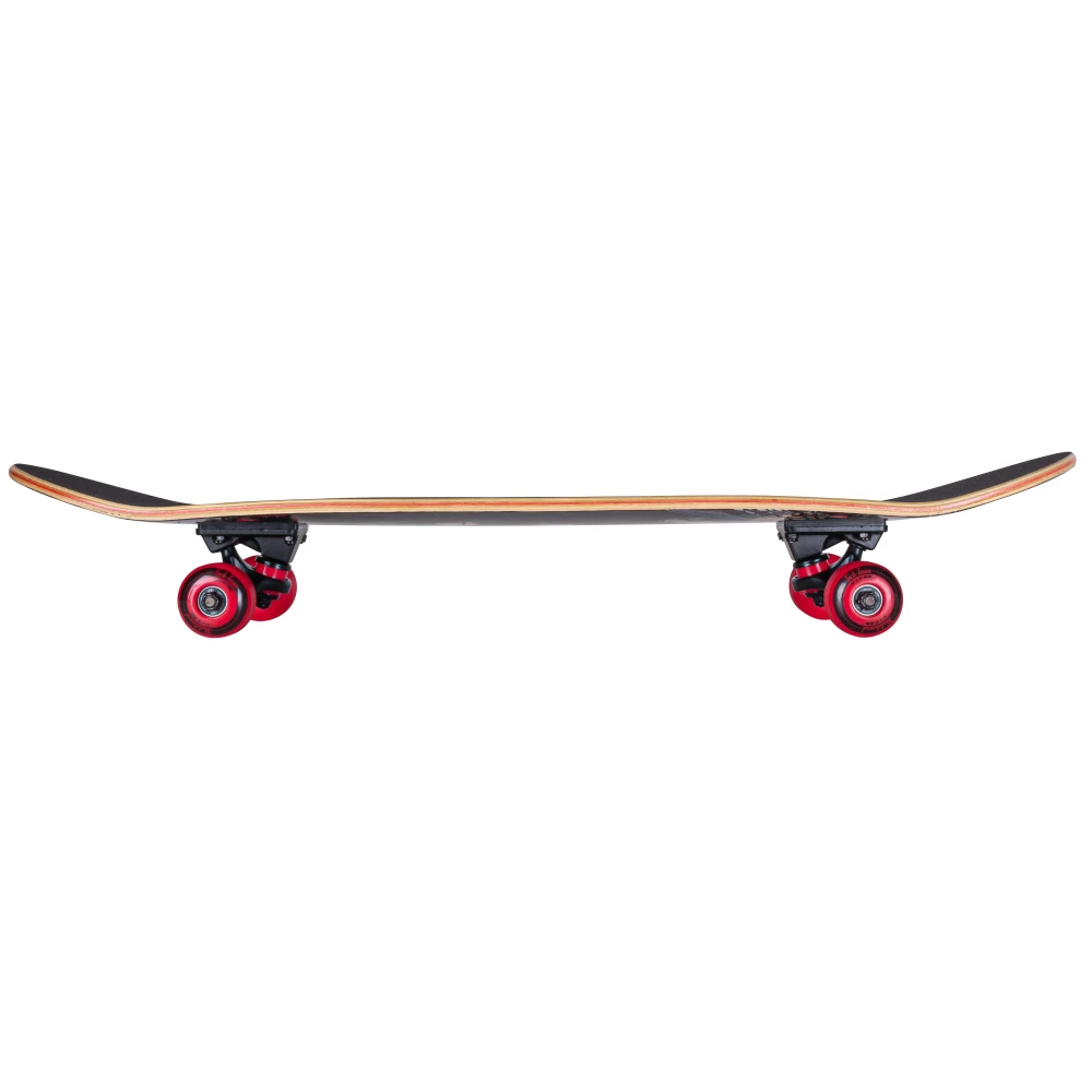 Поверхностная и основная часть изделия изготовлена из русского 7-слойного клена с эпоксидной смолой, обеспечивающего большой срок службы и максимальную гибкость доски. На практике особенности клена полезные при маневрировании и выполнении трюков. По этим причинам доска, быстро раскупаемая экстремалами. При этом производитель акцентирует внимание на следующем. Скейтборд предназначен для пользователей от 5 летнего возраста массой тела до 100 кг. Модель классическая и универсальная.