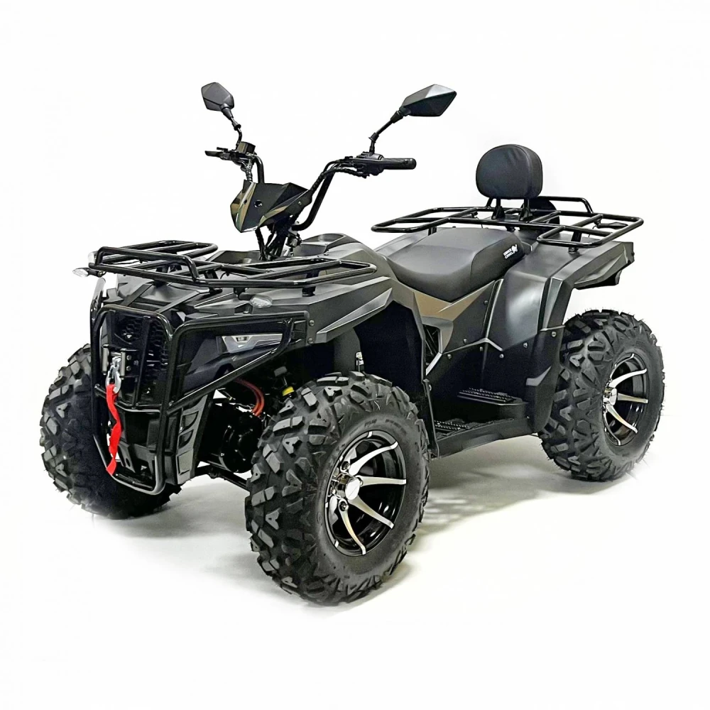 Двигатель квадроцикла – это высокоэффективный PMSM мотор мощностью 10 кВт, который обеспечивает динамичное ускорение и плавное распределение мощности. Максимальная скорость достигает 70 км/ч, что позволяет уверенно передвигаться как по проселочным дорогам, так и по легкому бездорожью, а максимальная нагрузка в 200 кг открывает широкие возможности для перевозки пассажиров и грузов. Дополнительные опции, такие как фаркоп и лебедка, значительно расширяют функциональные возможности транспортного средства, делая его незаменимым помощником в самых разнообразных ситуациях.