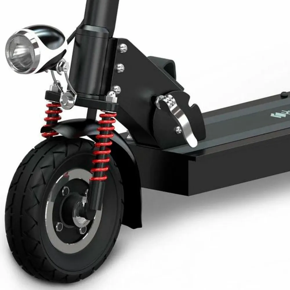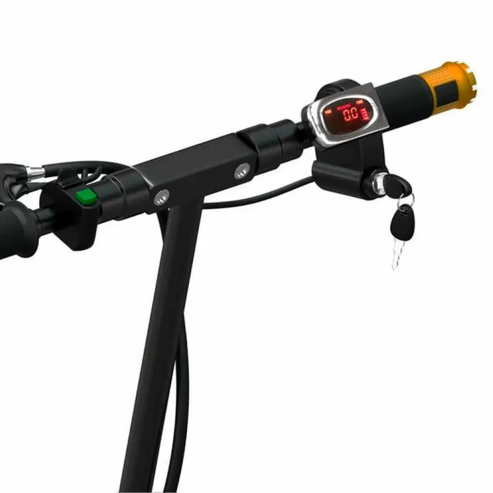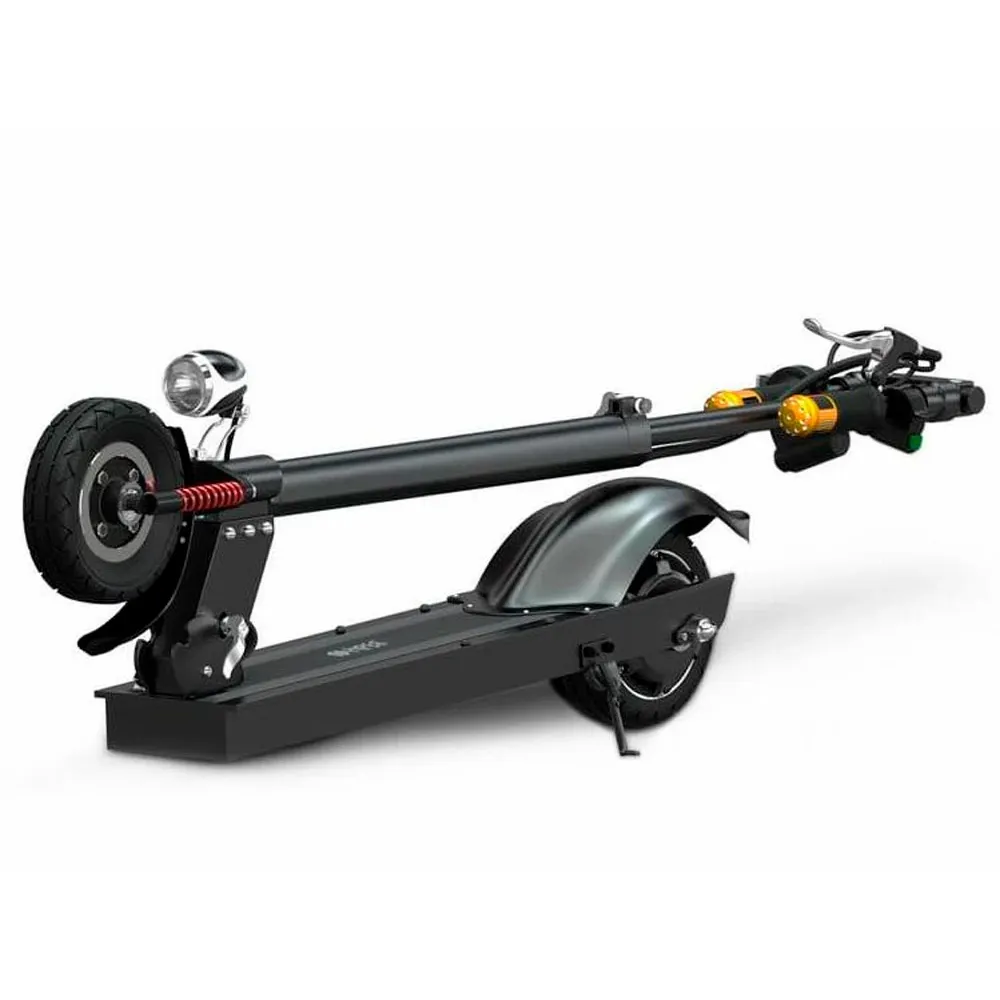 При массе 14,5 кг максимальная грузоподъемность техники составляет 120 кг. Легкий вес обусловлен алюминиевой конструкцией рамы. Она изготовлена из инновационного ударопрочного материала, не ржавеющего, не теряющего первоначальных характеристик при воздействии неблагоприятных внешних факторах. 8-дюймовые колеса с передним амортизатором накатистые. В сочетании с брендовой тормозной системой гарантируют стопроцентное послушание ездока и своевременность остановки. С такими параметрами можно не бояться случайных падений и других непредвиденных ситуация. Наличие светодиодного освещения обещает безопасную езду в непогоду и вечернее время. . При мощности электродвигателя 350 Вт и максимальном разгоне скорость составляет 38 км/час, а заявленный производителем запас хода – 20 км. Благодаря нескользящей деке, прорезиненными грипсам и информационному дисплею модель считается максимально безопасной. Наряду с этим, с такими параметрами не лишним будет позаботиться о приобретении защиты для ездока.