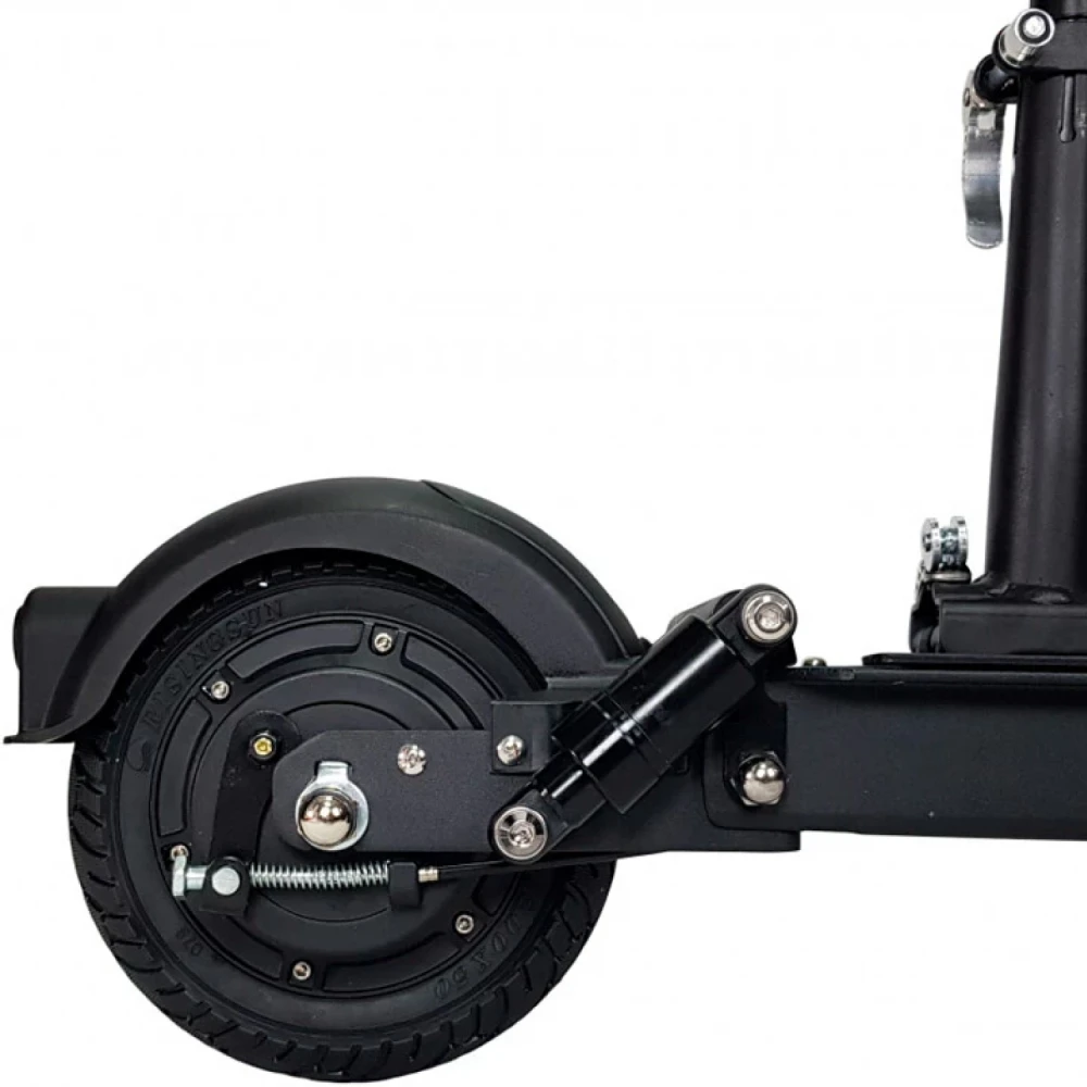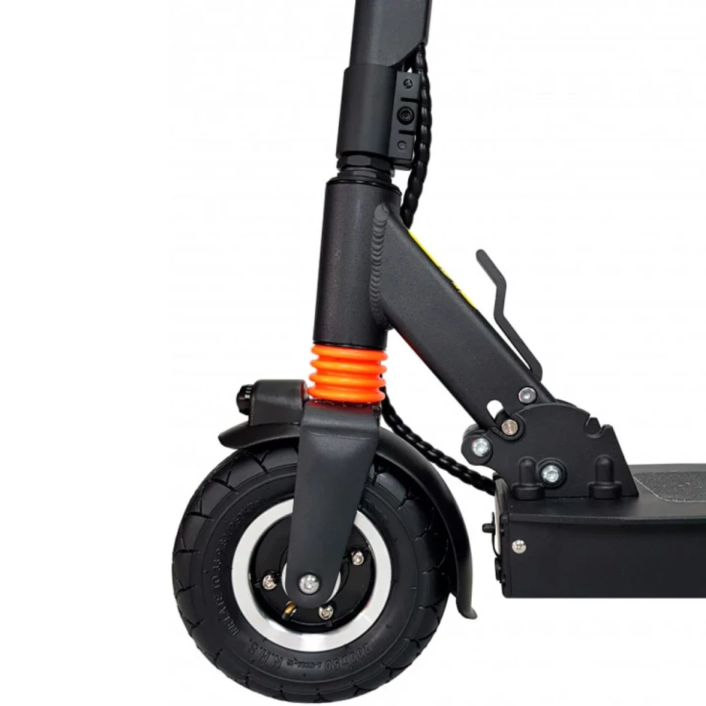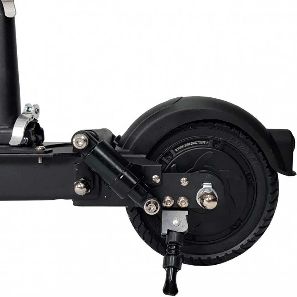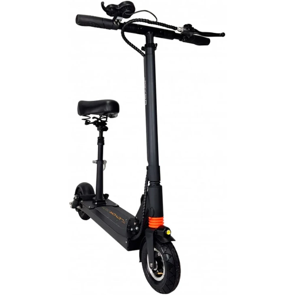 Модель оборудована передним и задним амортизатором, которые хорошо понижают вибрацию от наезда на кочки и неглубокие ямы. Быстрый разгон до 35 км/час обеспечивается электродвигателем 350 Вт. Усиленная алюминиевая рама выдерживает нагрузку в 120 кг.  Складная конструкция техники позволяет легко перевозить тс в багажнике автомобиля. Удобное сидение и широкая дека подойдет для длительных заездов. Барабанная тормозная система быстро останавливает технику. На 8 дюймовые колеса нанесен рельефный протекторный рисунок. Яркая фара и светодиодные габаритные огни хорошо освещают путь в темное время суток и при плохой видимости. Надеемся вам понравился товар. Телефонный звонок ускорит заказ и доставку товара.