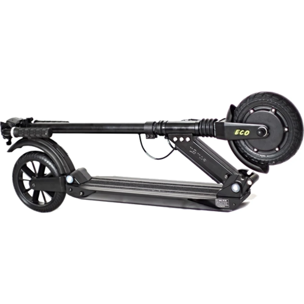 Электросамокат Generic E-twow S2 ECO легкая версия, его масса 10.5 кг. В сложенном состоянии занимает очень мало места. Легко носить в руках, нет проблем с хранением. Не смотря на вес, усиленная конструкция самоката выдерживает нагрузку 120 кг. Это отличительная черта E-twow.