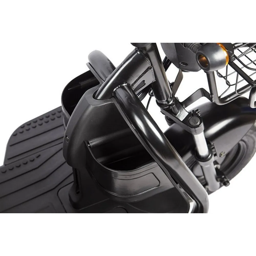 Большая вместительная корзина упрощают процесс перевозки личных вещей, продуктов. Широкая платформа для водителей и пассажиров не допускает усталости во время продолжительной езды. При необходимости пассажирское сиденье может трансформироваться и превращать диван в грузовой отсек.