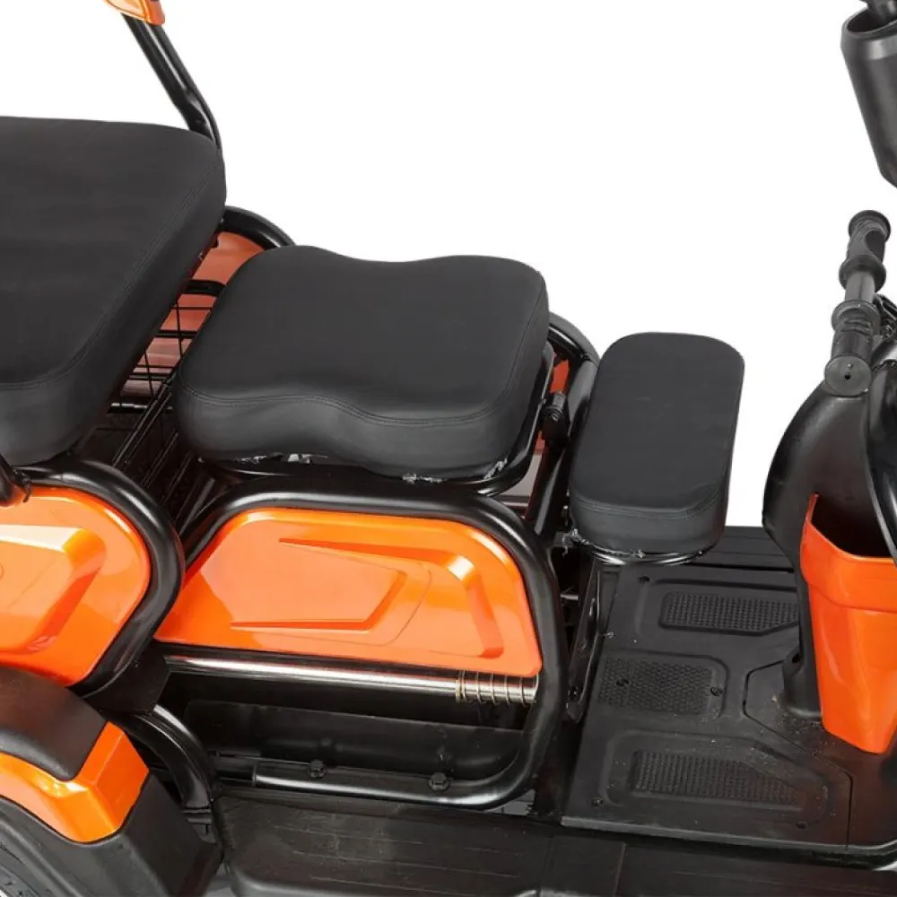 • Компактность и легкость: С весом всего 70 кг и габаритами 114х70х65 см, этот электрический трицикл легко маневрирует в условиях городской среды, не занимая много места при хранении.