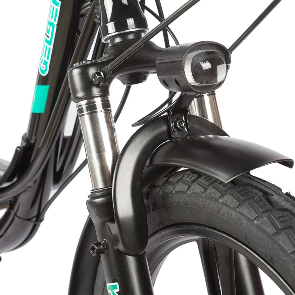 Электровелосипед Eltreco Gelbert Khan 1 – это современное транспортное решение для динамичных городских маршрутов, которое совмещает минималистичный дизайн, передовые технологии и экологичный подход к передвижению. Его конструкция разработана с акцентом на легкость и маневренность, что делает его идеальным спутником в условиях плотного городского трафика.Благодаря прочной стальной раме, общий вес велосипеда составляет всего 33 кг, что значительно упрощает его использование в повседневной жизни. Компактные размеры (1600×1100×670 мм) обеспечивают удобство хранения и транспортировки, несмотря на отсутствие складного механизма. Модель способна выдержать максимальную нагрузку до 140 кг, что позволяет использовать его широкому кругу пользователей.Сердцем данного электровелосипеда является задний двигатель мощностью 240 W, работающий при напряжении 60 V. Такая конфигурация гарантирует стабильное ускорение и достаточную мощность для городских поездок. Аккумулятор с емкостью 13 Ah обеспечивает заявленный пробег до 50 км на одном заряде, хотя реальные показатели могут варьироваться в зависимости от рельефа, погодных условий и веса райдера.Системы безопасности и управления разработаны с особой тщательностью: передний тормоз реализован в виде барабанного, а задний – дисковым гидравлическим механизмом, что обеспечивает уверенное торможение даже в экстренных ситуациях. Дополнительно велосипед оснащён зеркалами заднего вида и передними с задними габаритными фарами, повышающими видимость и безопасность в условиях недостаточной освещенности.Электровелосипед Eltreco Gelbert Khan 1 – это выбор для тех, кто стремится к эффективному и экологичному способу передвижения, не теряя в комфорте и безопасности. Он идеально подходит для ежедневных городских поездок, обеспечивая баланс между производительностью, легкостью управления и стильным дизайном.
