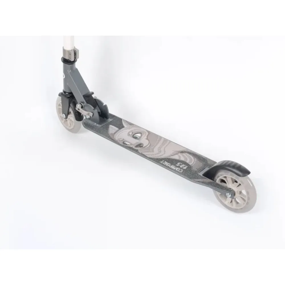 САМОКАТ COMFORT 125R 2021 серый весом 2,5 кг востребован родителями, имеющих маленьких детей. Модель в сером цвете подходит для девочек и мальчиков. Трудно найти ребенка, которому не понравился самодвижущаяся инновационная техника. Модель не требует навыков и знаний, особых телодвижений. Главное правильно встать на деку и сделать необходимые телодвижения. Как правило, маленький райдер разбирается с ними самостоятельно.