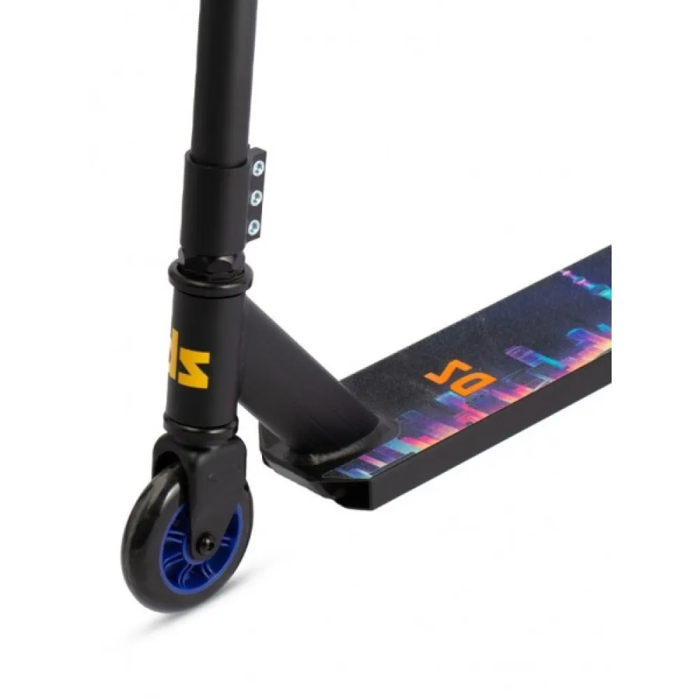 Фирменные накладки на руле обеспечивают отличное расположение рук райдера при экстремальной езде. Грипсы не подвержены температурному воздействию и атмосферным осадкам. Модель оснащена 100 мм прочными колесами, которые легко и беззвучно вращаются. Повышенная плавность движения и быстрый набор высоких скоростных показателей обеспечивается оригинальными подшипниками ABEC-7.