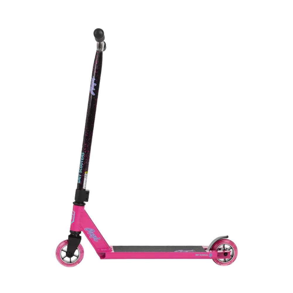 Трюковой самокат Grit Angel, 100 мм, розового цвета - техника, которая особенно понравится пользователям женского пола. Цветовое оформление понравится юным гонщицам и капризным подросткам. Маневренность и габаритные размеры тс подкупают сразу. Модель оборудована полиуретановыми колесами 100 мм.